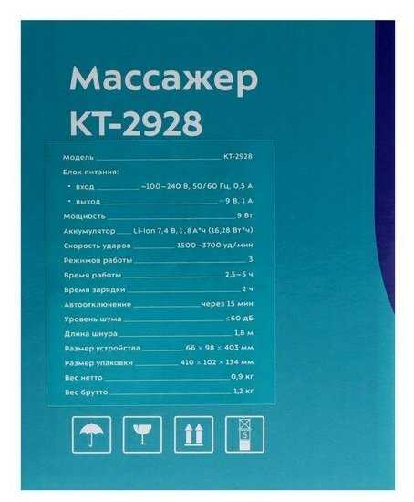 | Особенности : | автоматическое отключение, регулировка интенсивности массажа |