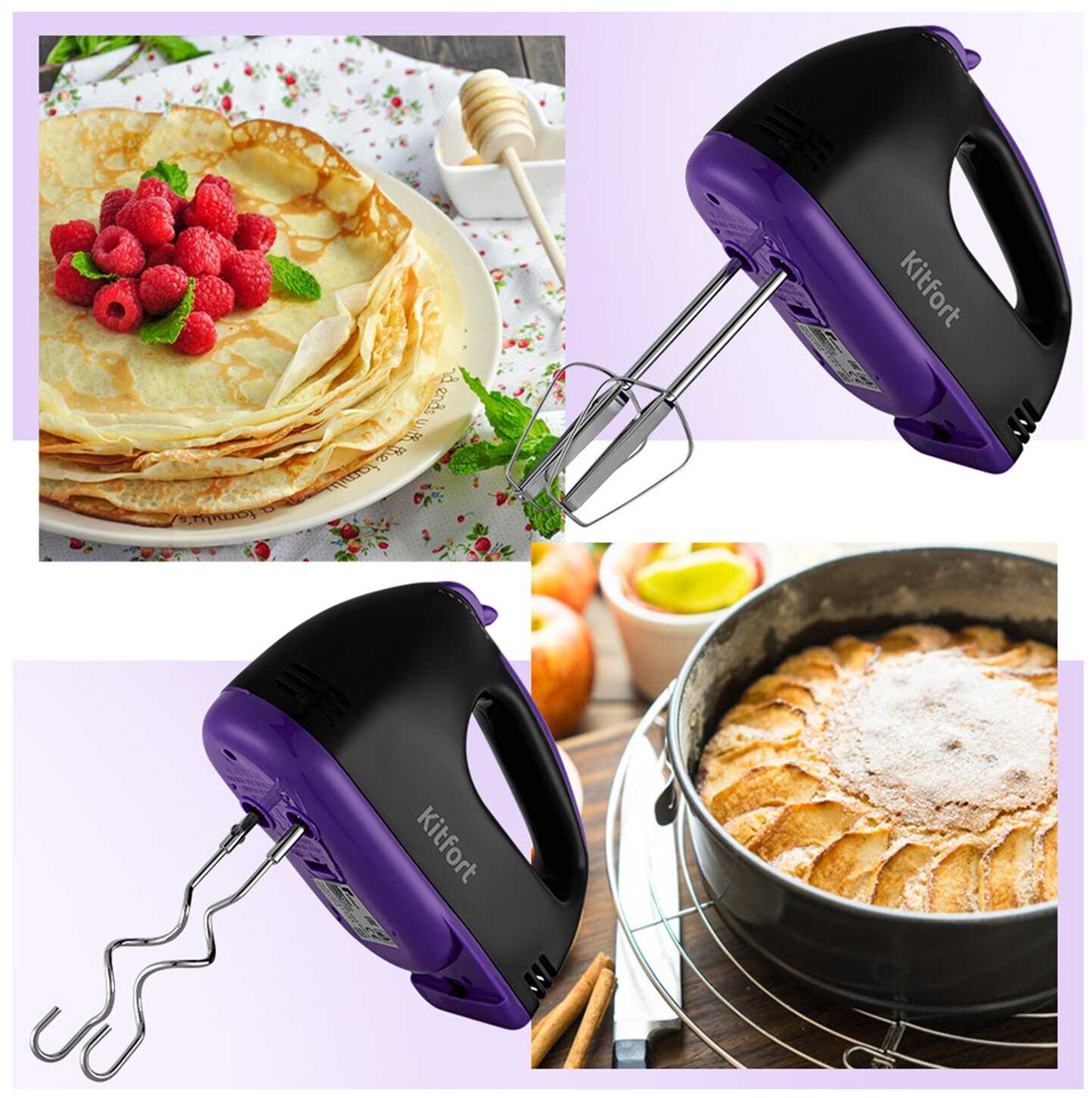 - Совместимость с фирменными аксессуарами Kitfort (например, соковыжималка для цитрусовых) расширяет функционал.