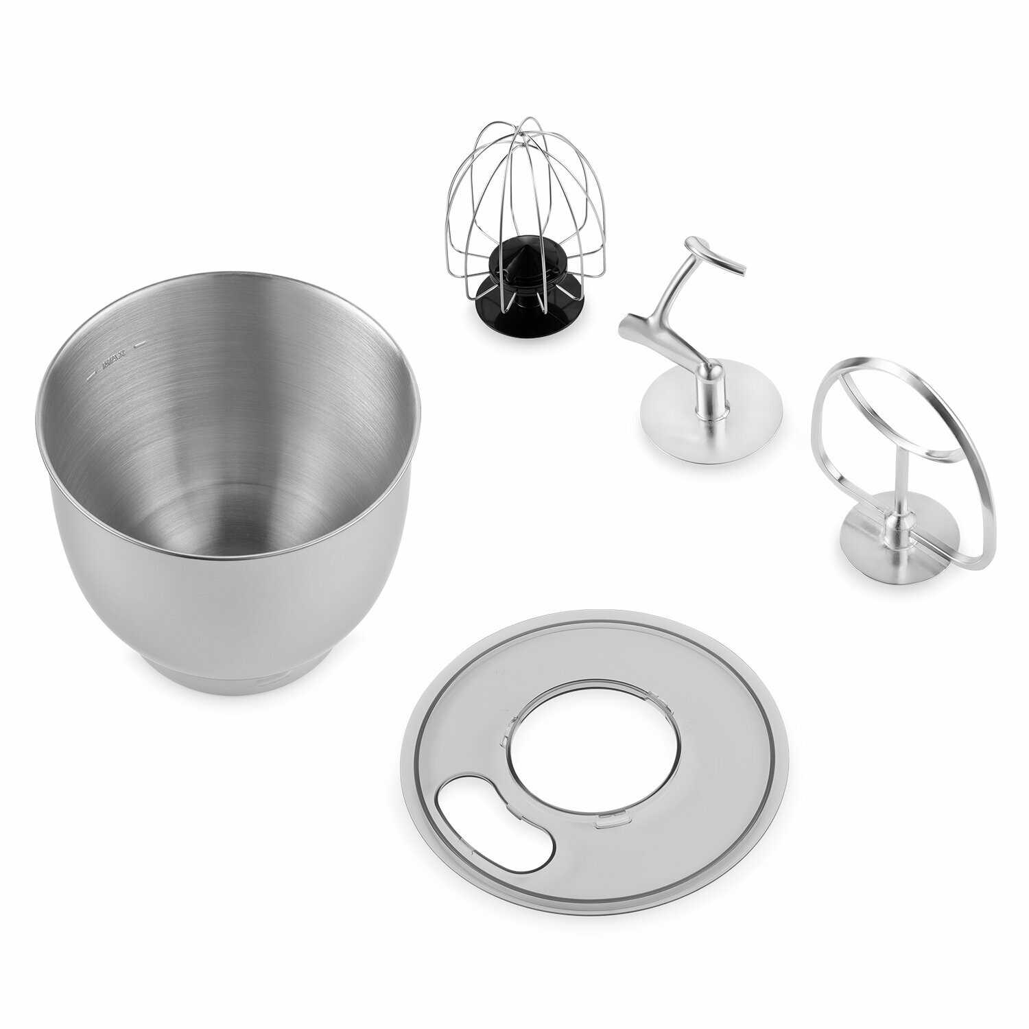 В этой ценовой категории самый достойный вариант планетарного миксера. Стильный дизайн, компактный размер, но при этом чаша хорошего объема. Все необходимые для работы насадки идут в комплекте.