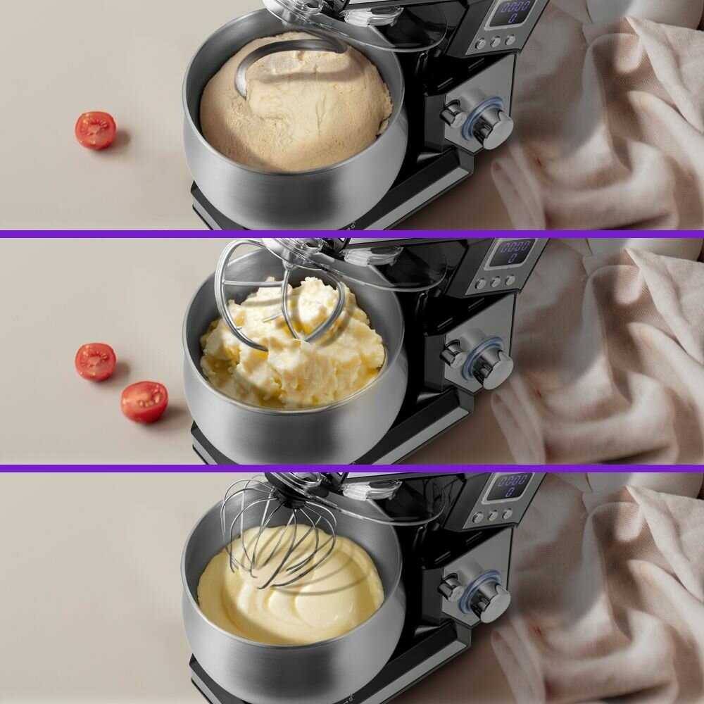 У миксера есть несколько скоростей, что позволяет адаптировать его работу под конкретные задачи. Я часто использую низкие скорости для аккуратного смешивания сухих ингредиентов, а высокие — для взбивания сливок или теста. Также стоит отметить наличие различных насадок: венчика, крюка для теста и лопатки. Каждая из них выполняет свою задачу на высшем уровне.