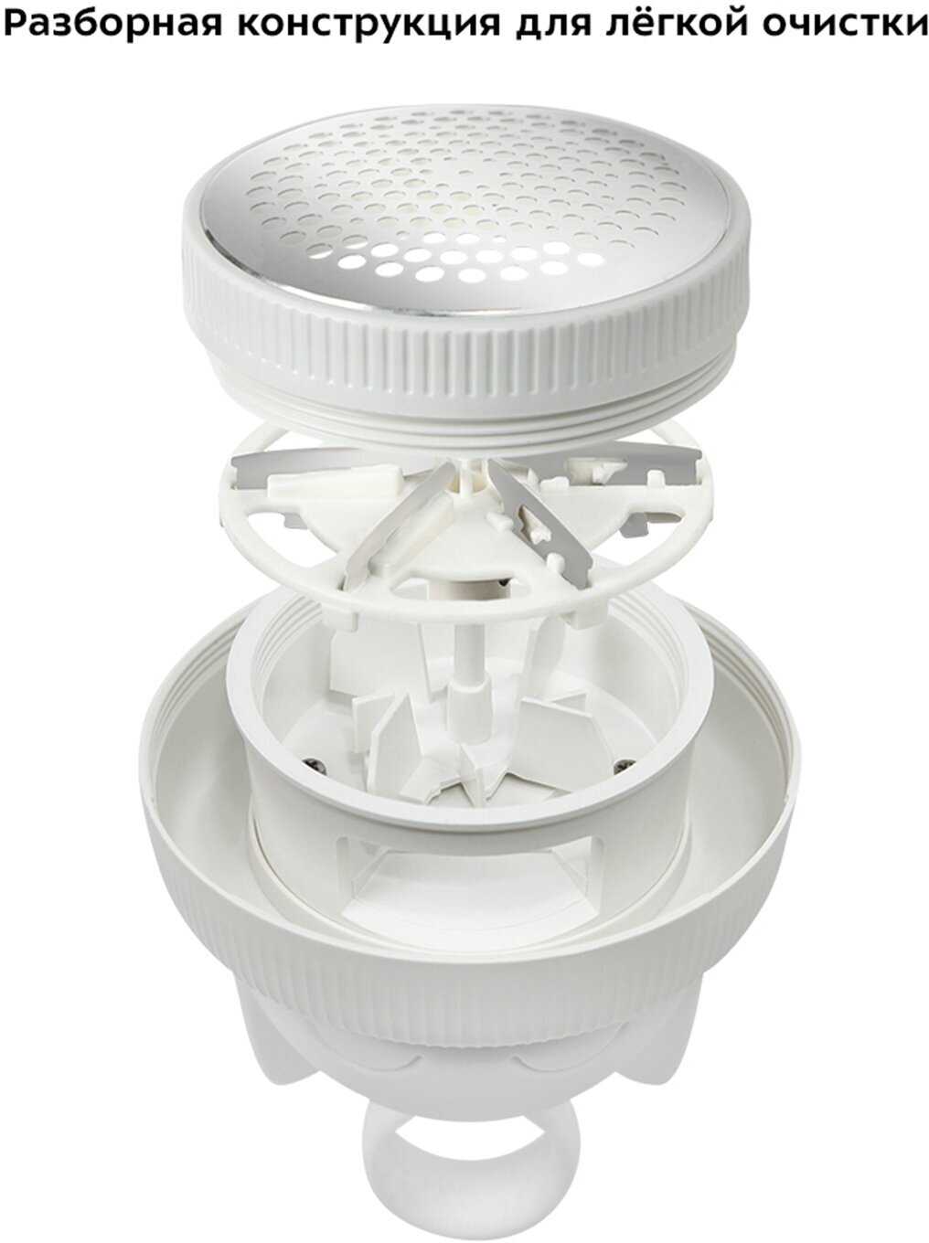 Ёмкость рассчитана на сбор катышков с 1-2 свитеров или 3-4 легких вещей (футболки, водолазки). При чистке пледов или плотных пальто опустошать его придётся каждые 5-7 минут работы. Фиксация контейнера надёжна, но требует совмещения резьбы при закрывании. -