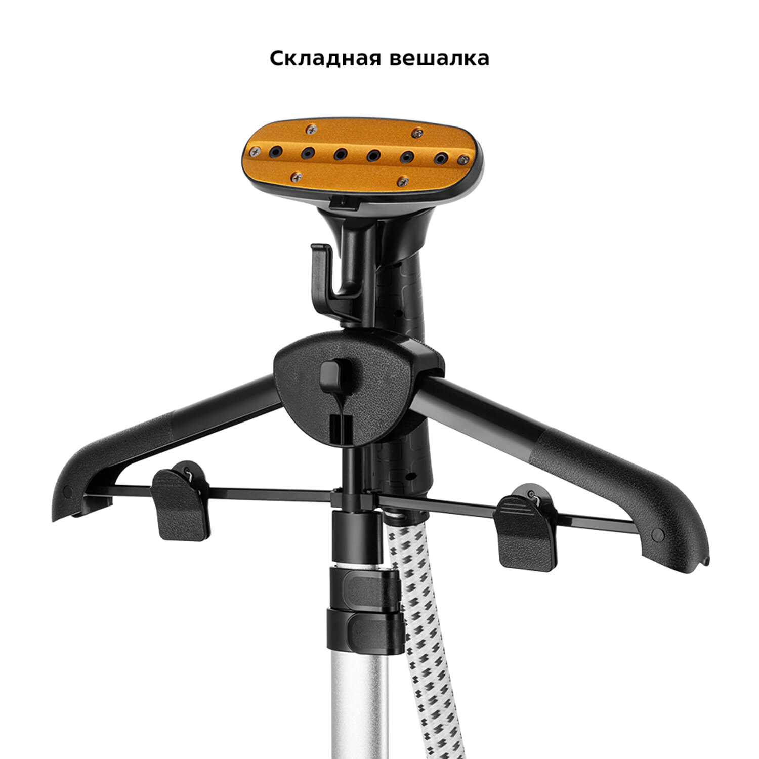 - + Мощный поток пара, большой резервуар, высокая штанга для вешалки