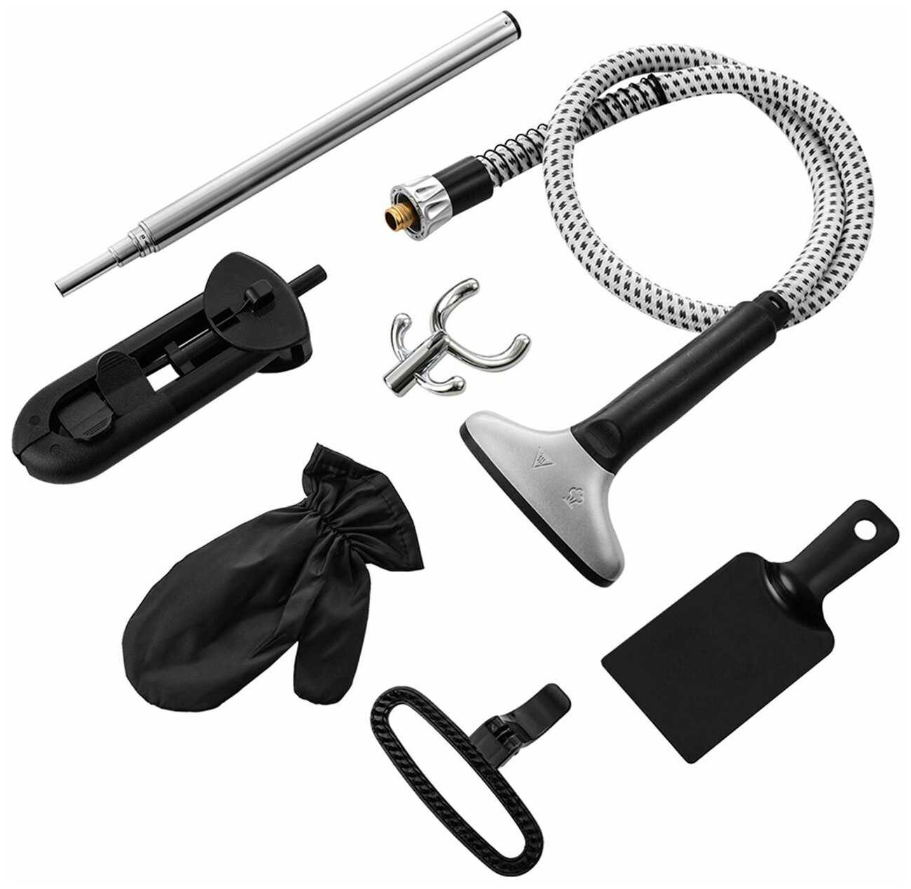 В базовую поставку входят насадка для меха, приспособление для манжет и воротников, защитная варежка, а также щётка для ворса. Эти дополнения повышают универсальность: например, варежка защищает руки от горячего пара, а специализированные насадки упрощают обработку сложных деталей одежды. Пользователи подчёркивают, что аксессуары значительно облегчают работу с деликатными материалами и мелкими элементами. -