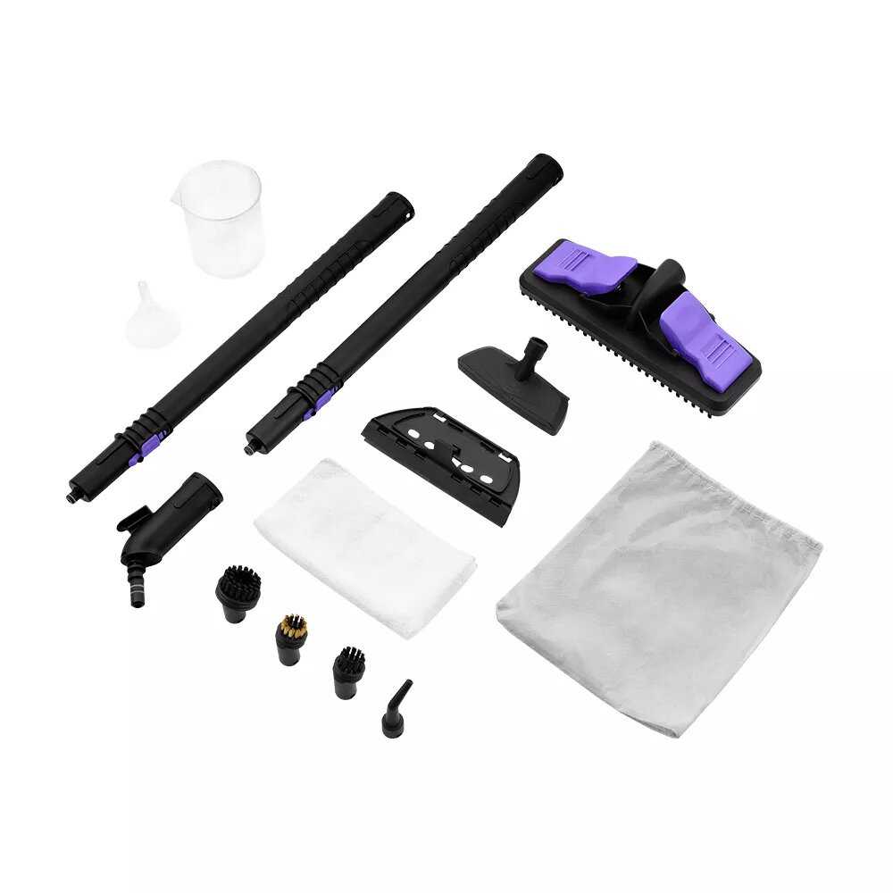 - + Хорошая комплектация; легкая и понятная сборка и замена насадок; приятный дизайн; небольшой вес; длительная работа на одном полном бачке; хорошо справляется с загрязнением.