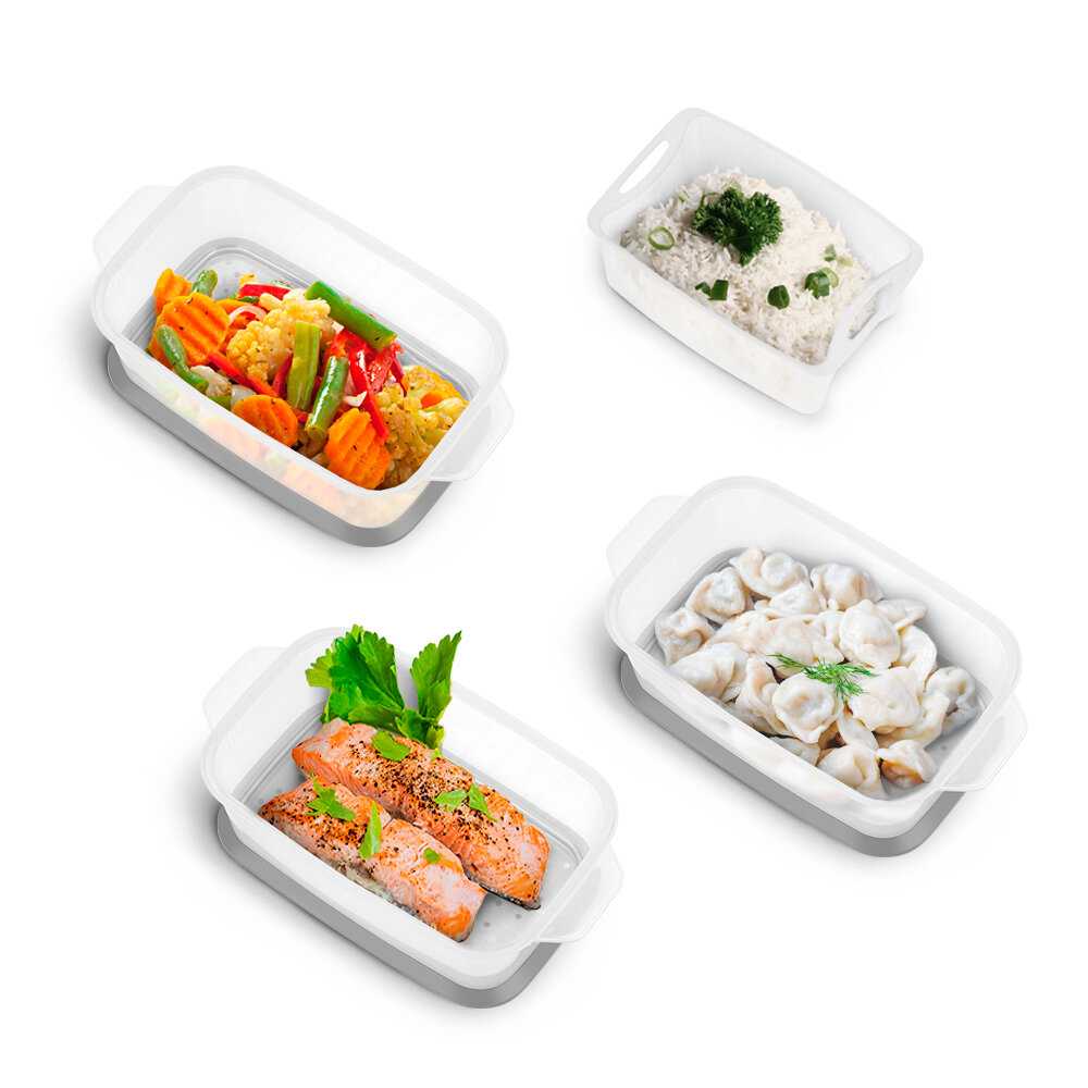 - Прозрачные стенки контейнеров позволяют визуально контролировать процесс готовки.