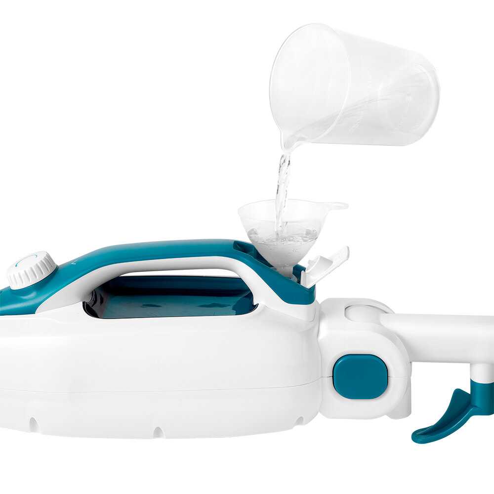 Вес устройства (2.8 кг с водой) и необходимость маневрировать с кабелем могут вызывать сложности у пожилых пользователей. Однако система автоотключения при перегреве или опрокидывании обеспечивает безопасность. Для комфорта рекомендуется делать перерывы при обработке больших площадей. -