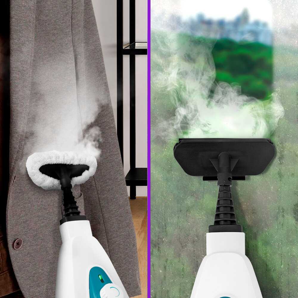 Пока только испробовала как швабру и отпариватель, с этим всем справляется отлично. Единственное нужно быть аккуратным с деликатными тканями, немного подтекает кипяток и можно испорить вещь (именно это и произошло), а вот хлопок отлично и без страха можно отпаривать.