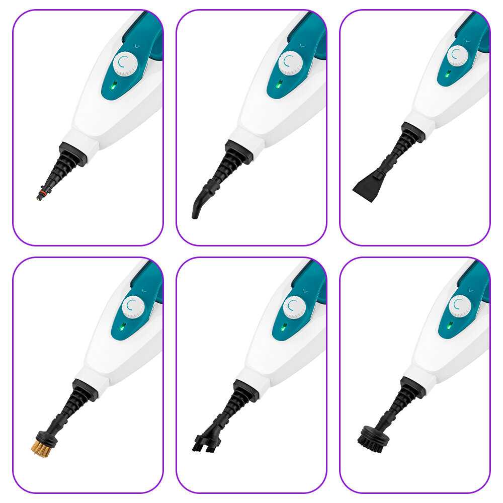 Комплектные насадки позволяют чистить плиточные швы, мягкую мебель, подошву обуви, духовки и текстильные шторы. Особенно эффективна обработка стыков кафеля — пар вымывает загрязнения из микропор, восстанавливая цвет затирки. Для деликатных тканей используйте минимальный режим пара. -