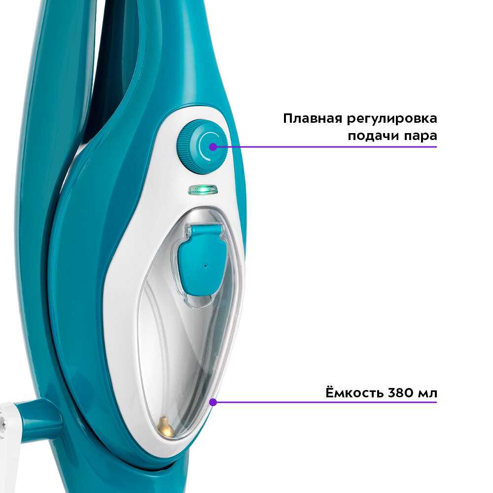 - Непрерывная подача пара в течение 25 минут при полном баке 350 мл — достаточно для уборки 70 м².