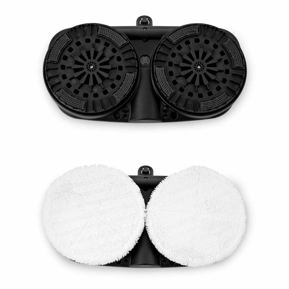 - + Швабра движется сама, вы легко направляете вектор движения, как автомобиль с гидроусилителем руля, и это замечательно!!! Все в конструкции сделано функционально и просто, тряпки легко прилипают к кругам.