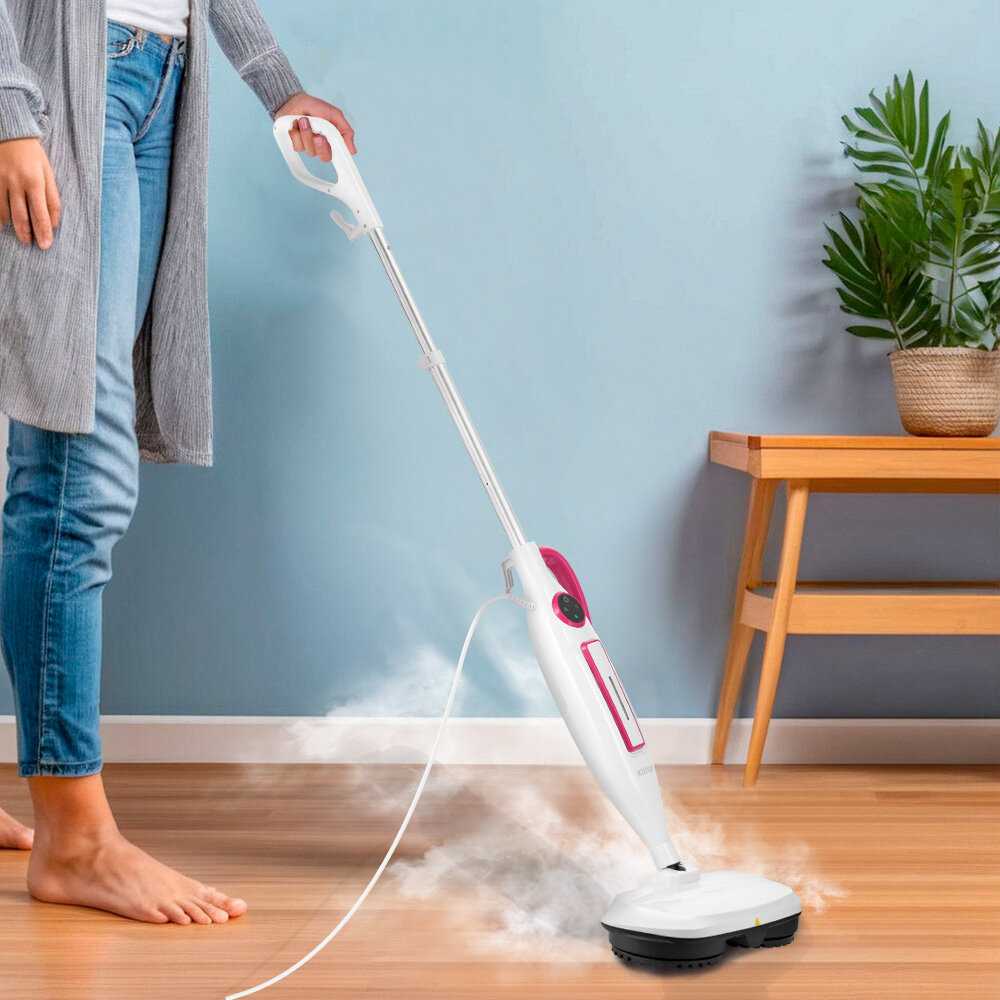 Мощный пар: Швабра быстро нагревается и производит достаточно пара, чтобы эффективно очищать полы, особенно плитку и ламинат. Пар помогает избавиться от грязи и бактерий без использования химических средств.