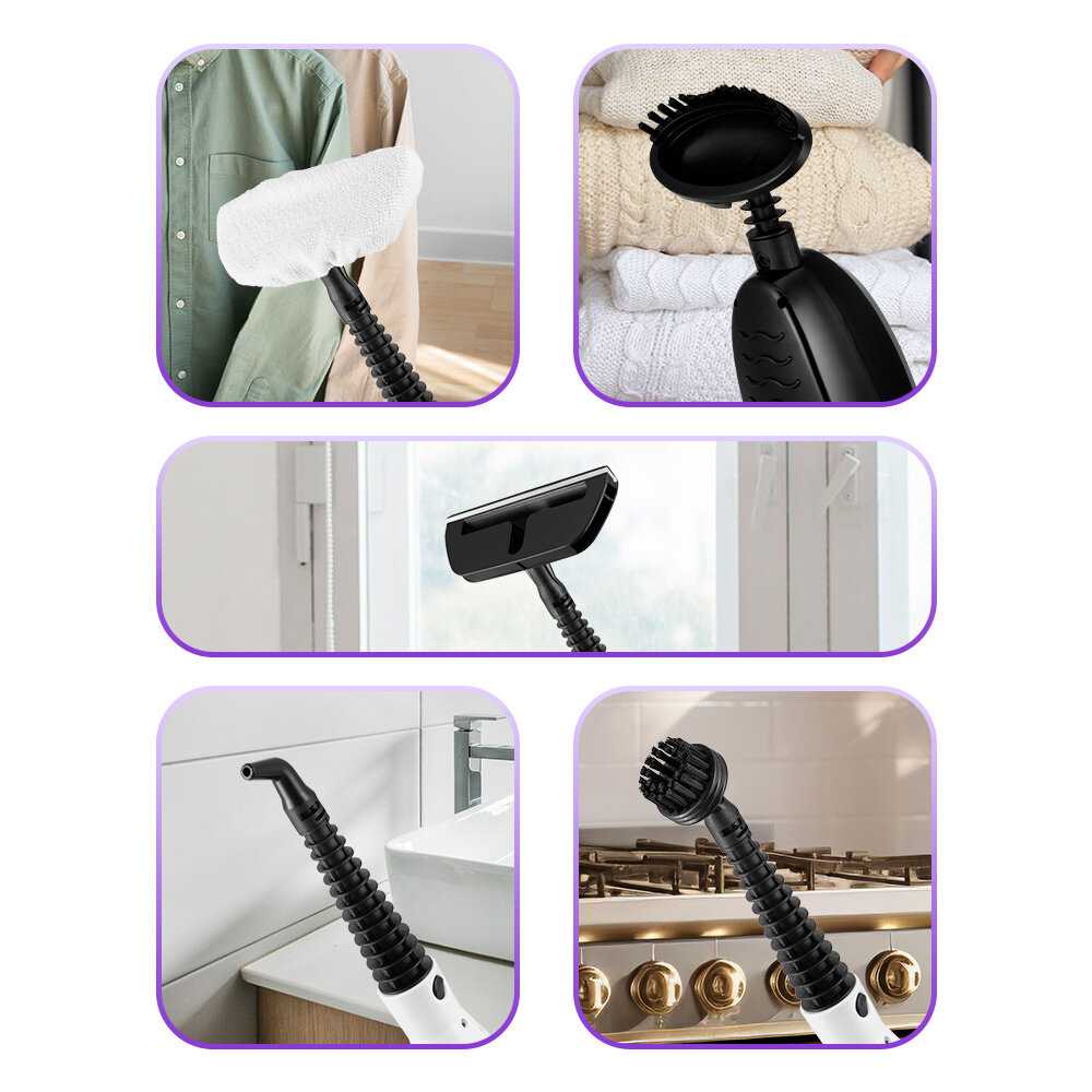 Дополнительные насадки: В комплекте идут несколько насадок, что позволяет использовать швабру не только для пола, но и для очистки других поверхностей.