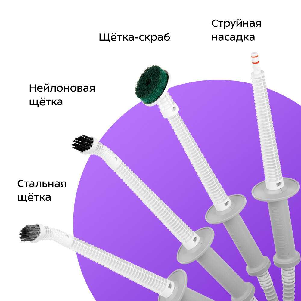 - + универсальность за счёт насадок. можно мыть всё. самое главное не нужно использовать ни каких моющих средств. со своей задачей справляется на все 200 процентов.