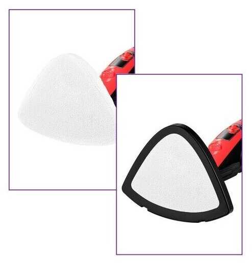 Треугольная насадка с закругленными краями обеспечивает доступ к плинтусам и стыкам стен, но требует привыкания. Для узких зон (например, межплиточных швов или углов душевой кабины) в комплекте есть специальная щелевая насадка. Некоторые пользователи отмечают, что у краев стен требуется дополнительная "доработка" из-за скругленной формы, но гибкое крепление головки компенсирует этот нюанс. -