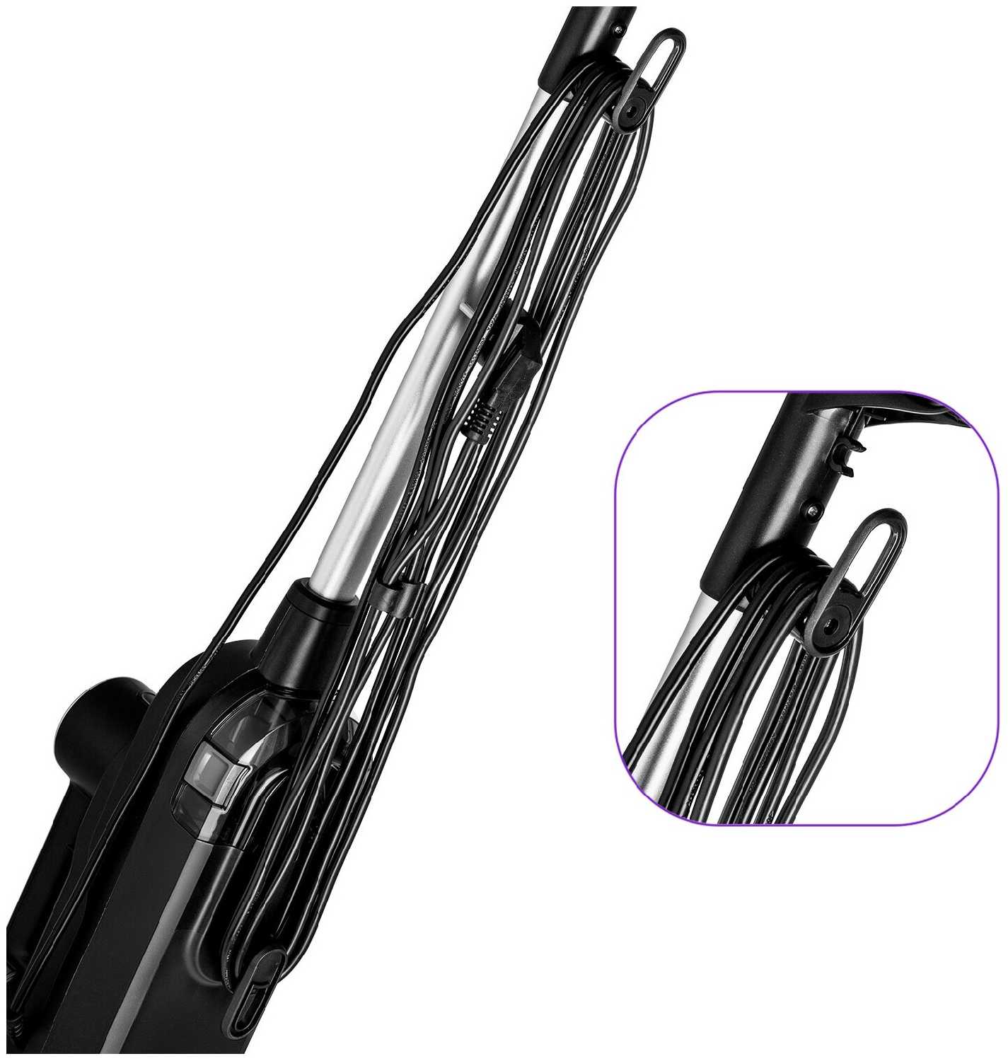 - Длинный шнур (5 м) с фиксатором позволяет убирать большую площадь без частых переключений.