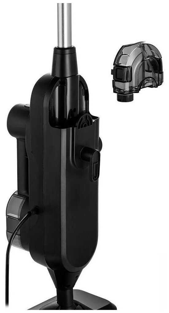 Конструкция швабры получила неоднозначные оценки. С одной стороны, вертикальная парковка с устойчивой базой (благодаря нижнему расположению резервуара) экономит место, а распределение веса (3.5 кг) снижает нагрузку при мытье полов. С другой – ручной модуль признан тяжеловатым для продолжительной работы на весу: удержание одной рукой при одновременном зажиме кнопки подачи пара вызывает усталость. Техническое решение с ручной активацией пара (только при нажатии) имеет двоякий эффект: это предотвращает бесполезный расход пара при паузах, но усложняет обработку потолков или высоких шкафов. Длина 5-метрового шнура достаточна для средних комнат, но при уборке смежных помещений требует переподключения. Отдельный резервуар для моющего средства – полезная опция, однако его малый объём (меньше, чем у водного бака) и отсутствие чёткой регулировки подачи отмечены как минусы.