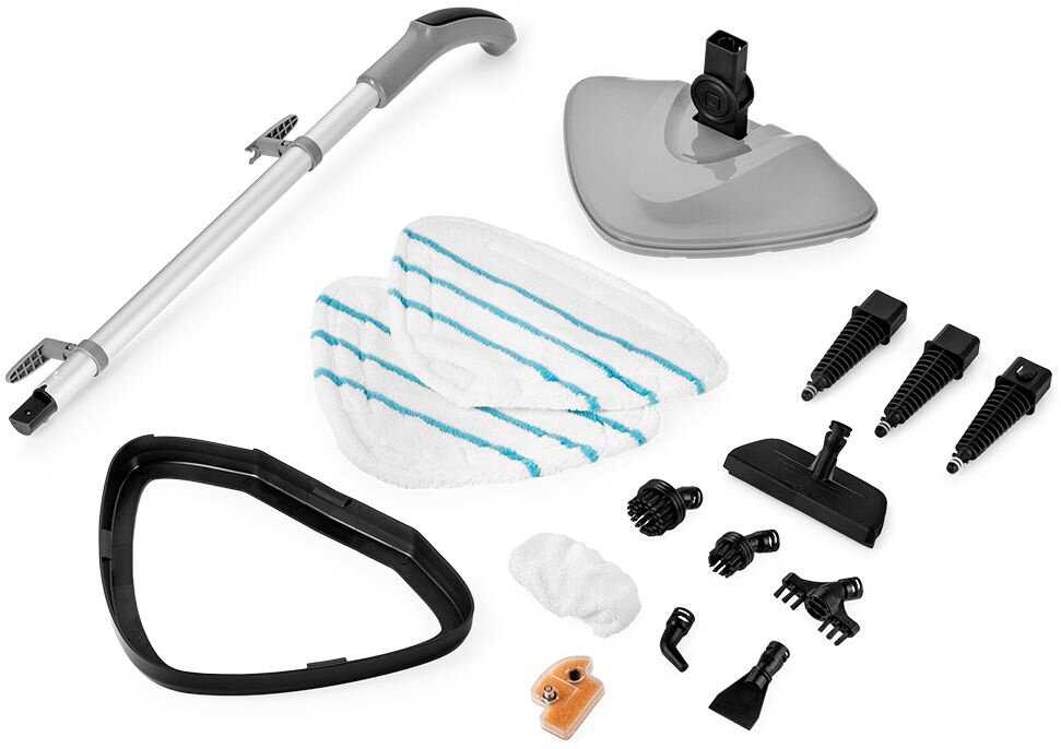 - + Универсальная паровая швабра 5 в 1 очень порадовала, полы моет отлично, казалось бы чистый пол, а стрлько грязи выпаривает! Отдельно как парогенератор тоже опробовала, отмыла детский стул для кормления за 10 минут, хотя в мелких дырочках еда копилась и прикипала годами, мелких насадок много, на разные труднодоступные места. Шнур длинный, что не может радовать, резервуар для воды тоже не маленький, хватает надолго. Сама швабра не такая уж тяжелая, два режима работы.
