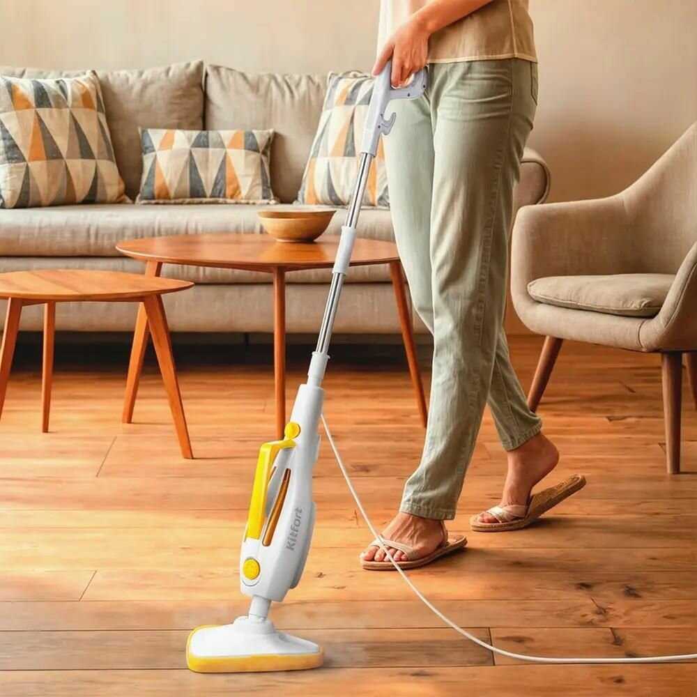 Эффективность паровой швабры Kitfort впечатляет. Благодаря высокой температуре пара, она легко и быстро удаляет даже самые стойкие загрязнения, не требуя дополнительного применения химических средств.