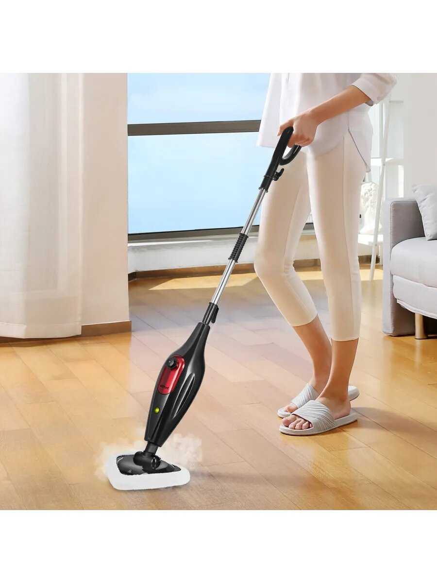 - + Легкая в сборке, удобная, понятная инструкция, быстро нагревается, отмывает трудные загрязнения на полу