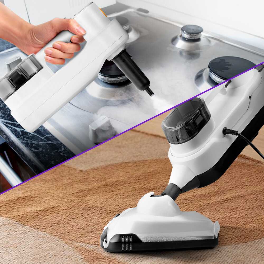 - Высокая эффективность очистки за счёт регулируемой подачи пара (3 режима) и мощности 1300 Вт: