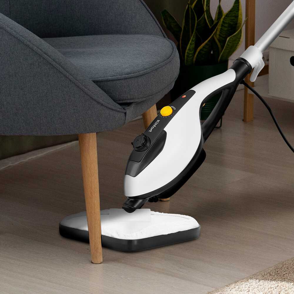 Эргономика устройства получила высокие оценки: швабра отличается маневренностью благодаря шарнирному соединению, позволяющему легко огибать препятствия и обрабатывать сложные участки. Вес конструкции (2.1 кг без воды) считается оптимальным для продолжительной уборки, хотя некоторые пользователи отмечают усталость при длительной работе с ручными насадками на весу. Технически важным параметром является время нагрева – всего 30-50 секунд до готовности, а регулировка подачи пара (3 уровня интенсивности) позволяет адаптировать очистку под разные материалы. Объём резервуара (400 мл) достаточен для обработки 15-20 м², что соответствует одной комнате, после чего требуется долив воды. Особо подчёркивается надёжное крепление основной тряпки – при правильной фиксации она не соскальзывает в отличие от аналогов конкурентов.