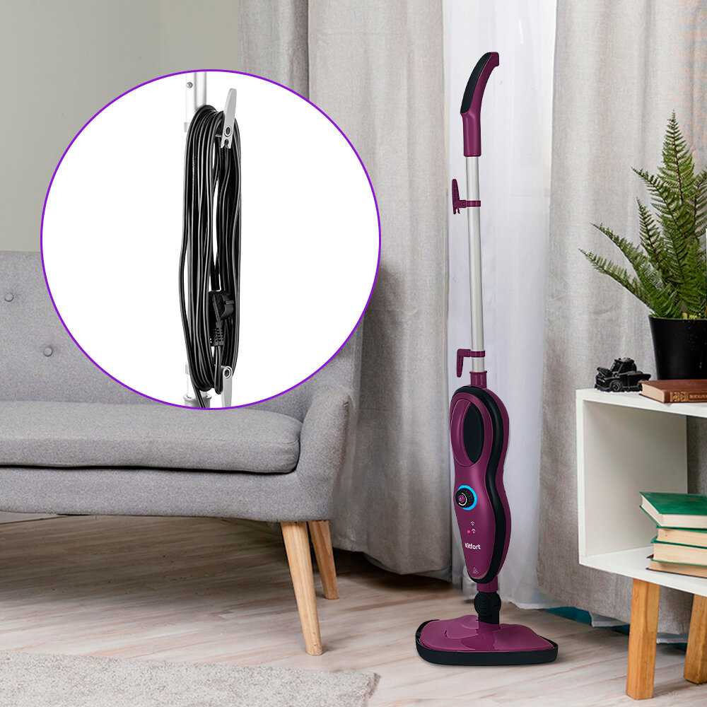 Швабра лёгкая, манёвренная, хорошо скользит по полу. Удобная ручка, длинный шнур, простое управление — всё это делает процесс уборки максимально комфортным. Вода заливается быстро, разогревается тоже очень быстро, и уже через пару минут можно начинать уборку.