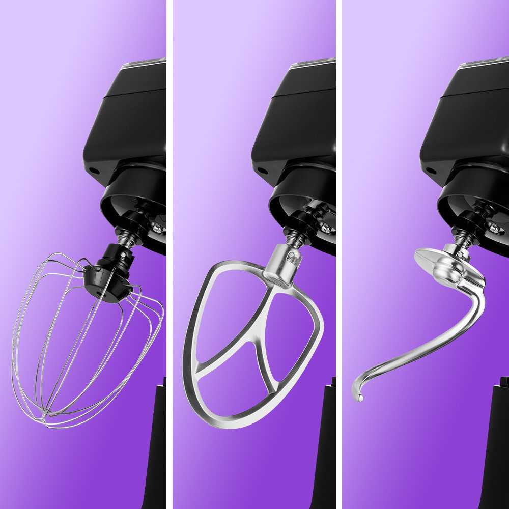 Металлическая чаша очень удобна в использовании, при вращении уверенно держится на месте. Комплектация планетарного миксера универсальна — от замеса дрожжевого теста до взбивания кремов и смешивания ингредиентов.