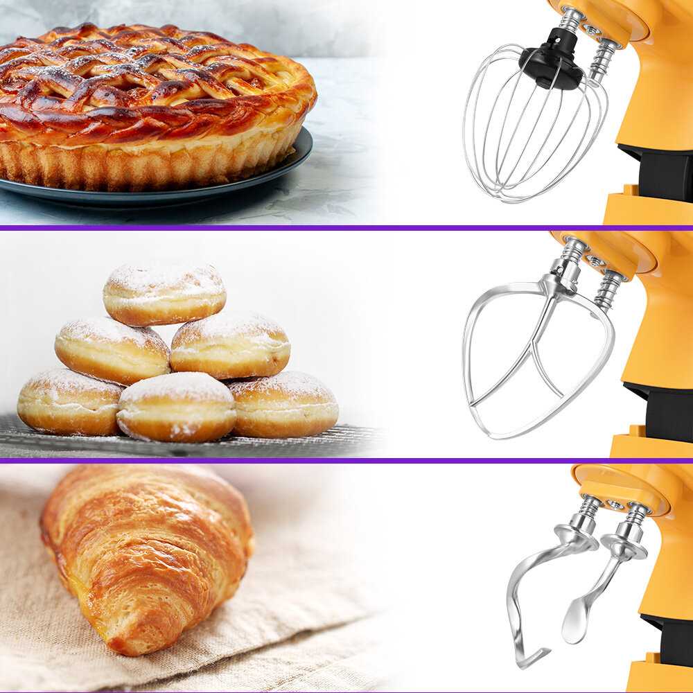 Да, миксер отлично замешивает крутое тесто для макарон, хлеба и печенья с помощью крюка и лопатки, которые работают в паре и делят тесто на части для равномерного замеса. В чаше ничего не остается, процесс проходит без проблем и без необходимости мять руками. Пользователи отмечают, что венчик и крюк захватывают ингредиенты полностью, даже густые массы. Некоторые жалуются, что венчик не всегда идеально промешивает со стенок чаши. -