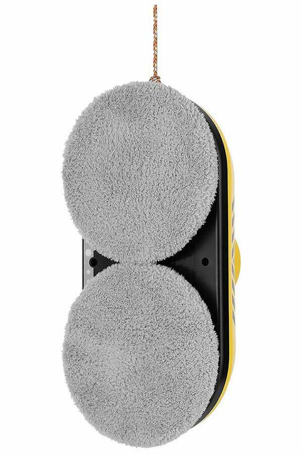 Технические параметры и комплектация: Робот питается от сети через длинный кабель, что обеспечивает непрерывную работу, но требует использования удлинителя для доступа к удаленным окнам. В комплект входят 10 сменных микрофибровых салфеток, пульт ДУ с батарейками, бутылочка-распылитель и страховочный трос. Яркий желтый цвет корпуса повышает видимость устройства при наружной эксплуатации. Габариты и форма робота позволяют ему работать на большинстве стандартных окон, однако на очень узких створках (уже габаритов устройства) он не может развернуться и рискует упасть. Отсутствие функции автораспыления и ограниченный запас тряпок для больших объектов (например, лоджии с 7 и более модулями) являются компромиссом, обусловленным ценовой категорией продукта.