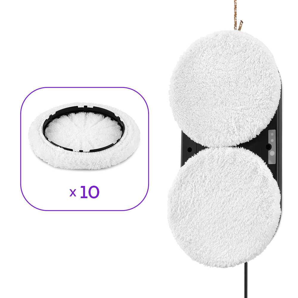 Очень удобно, что в комплекте 10 сменных тряпок из микрофибры, что позволит собрать например сначала сильные загрязнения, а после чистой тряпкой уже добиться чистого окна.