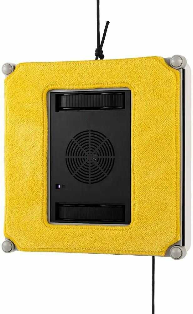 Сам робот крепится к батарее или другому объекту в квартире длинным страховочным тросом, а если свет вдруг вырубится, аккумулятор позволит ему удержаться на стекле.