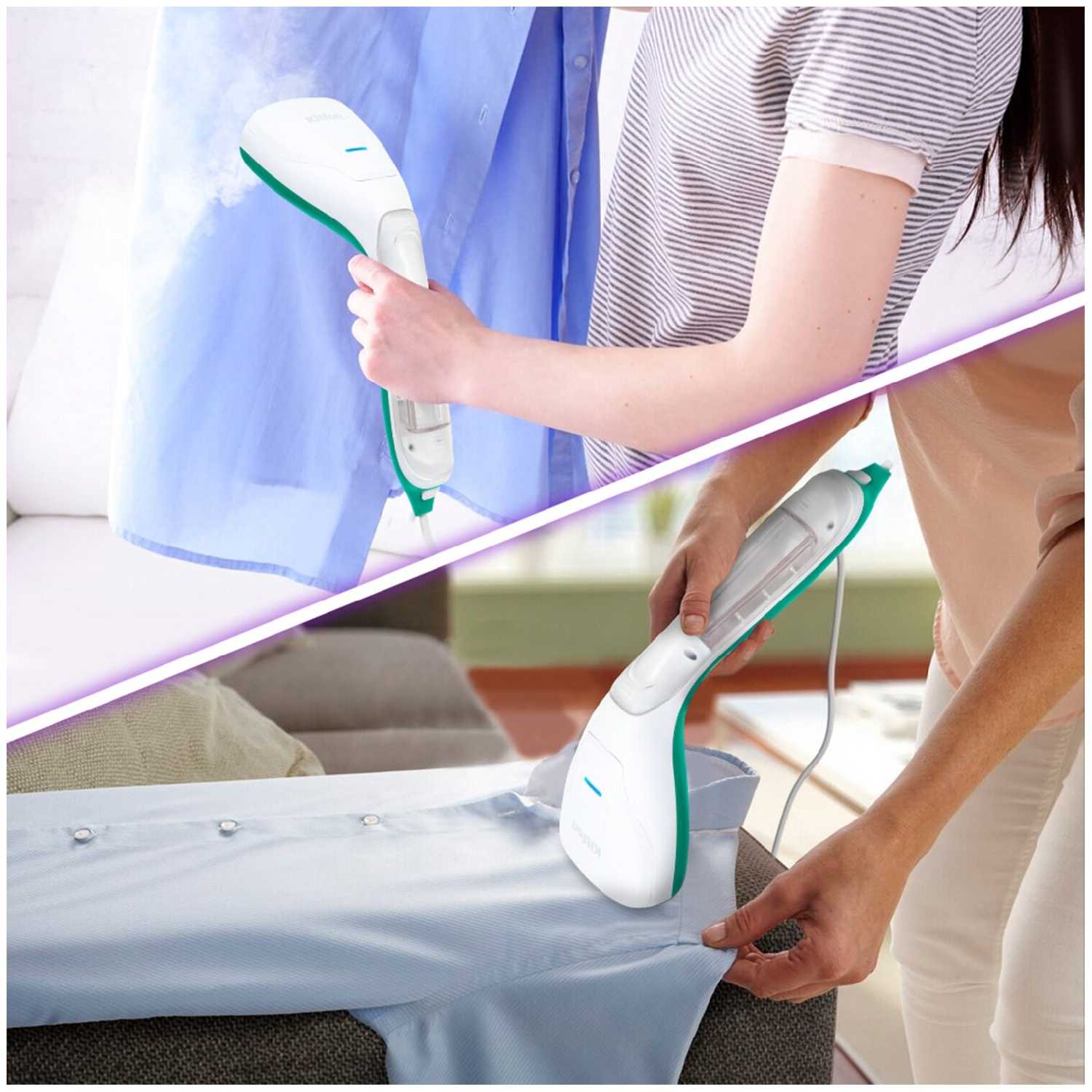 - + За свою цену очень даже неплохой отпариватель. Особенно, если не забывать, что он ручной, а не промышленный. Многие пишут в недостатках маленький резервуар для воды.. Для меня это не проблема периодически доливать воды. Очень понравилось оспаривать платья что свои, что маленькой дочки. Утюгом было бы муторнее 😁 Шнура 2м вполне хватает. В комплекте сам отпариватель, утюжок с микрофиброй, мерный стакан удобный для заливки воды. И приятный сюрприз в виде магнита 😁