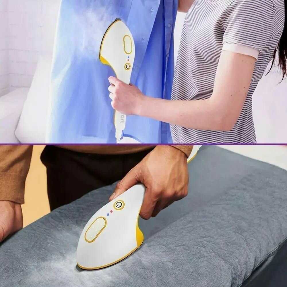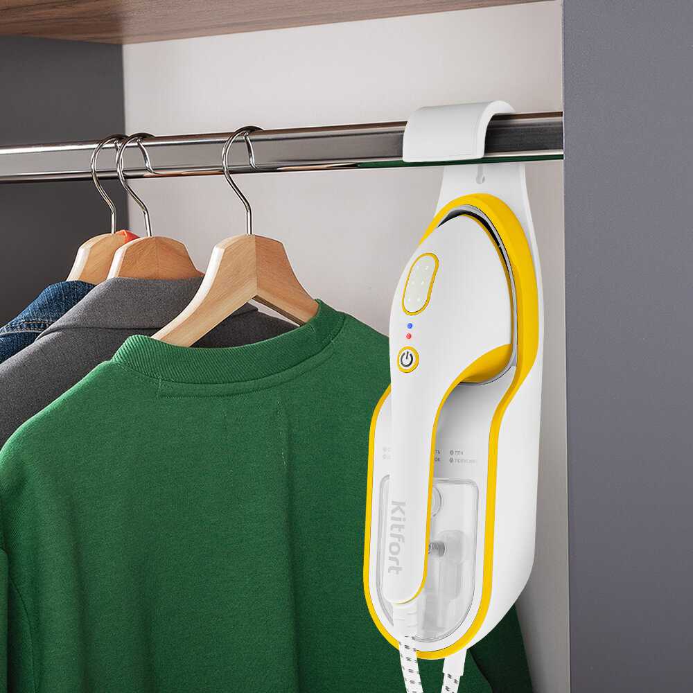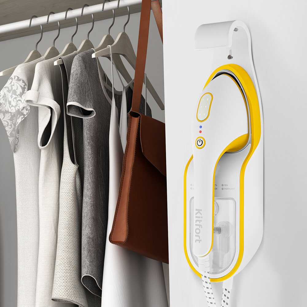 По работе — всё отлично. Легкий, компактный, нагревается быстро, пар идёт мощный, разглаживает хорошо. Особенно удобно для тонких тканей и рубашек, которые обычно трудно гладить утюгом. Варежка реально спасает от ожогов, не думала, что так пригодится.