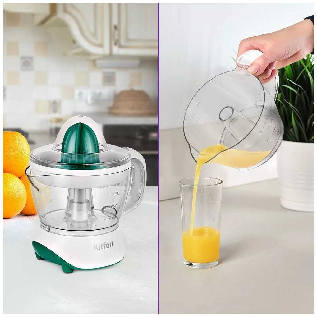 Π£ΡΡΡΠΎΠΉΡΡΠ²ΠΎ ΠΈΠ΄Π΅Π°Π»ΡΠ½ΠΎ ΠΏΠΎΠ΄Ρ ΠΎΠ΄ΠΈΡ Π΄Π»Ρ Π»ΡΠ±ΠΈΡΠ΅Π»Π΅ΠΉ ΡΠΈΡΡΡΡΠΎΠ²ΡΡ ΡΡΠ΅ΡΠ΅ΠΉ, ΡΠ΅Π½ΡΡΠΈΡ ΡΠΊΠΎΡΠΎΡΡΡ ΠΈ ΠΏΡΠΎΡΡΠΎΡΡ. ΠΡΠ½ΠΎΠ²Π½ΡΠ΅ ΠΏΡΠ΅ΠΈΠΌΡΡΠ΅ΡΡΠ²Π° ΠΏΠ΅ΡΠ΅Π΄ ΡΠ½Π΅ΠΊΠΎΠ²ΡΠΌΠΈ ΠΌΠΎΠ΄Π΅Π»ΡΠΌΠΈ - ΠΎΡΡΡΡΡΡΠ²ΠΈΠ΅ Π½Π΅ΠΎΠ±Ρ ΠΎΠ΄ΠΈΠΌΠΎΡΡΠΈ ΡΠΈΡΡΠΈΡΡ ΡΡΡΠΊΡΡ ΠΎΡ ΠΊΠΎΠΆΡΡΡ ΠΈ Π±ΡΡΡΡΠ°Ρ ΠΎΡΠΈΡΡΠΊΠ°. ΠΠΎ ΡΡΡΠ΅ΠΊΡΠΈΠ²Π½ΠΎΡΡΠΈ ΠΎΡΠΆΠΈΠΌΠ° ΠΏΠΎΠ»ΡΠ·ΠΎΠ²Π°ΡΠ΅Π»ΠΈ ΡΡΠ°Π²ΡΡ Kitfort Π² ΠΎΠ΄ΠΈΠ½ ΡΡΠ΄ Ρ Π±ΡΠ΅Π½Π΄Π°ΠΌΠΈ ΠΏΡΠ΅ΠΌΠΈΡΠΌ-ΡΠ΅Π³ΠΌΠ΅Π½ΡΠ° (Π½Π°ΠΏΡΠΈΠΌΠ΅Ρ, Moulinex), ΠΎΡΠΌΠ΅ΡΠ°Ρ Π»ΠΈΡΡ ΠΌΠ΅Π½ΡΡΠΈΠΉ ΠΎΠ±ΡΡΠΌ ΡΠΌΠΊΠΎΡΡΠΈ Π΄Π»Ρ ΡΠΎΠΊΠ°. ΠΡΡΡΠΈΠ΅ ΡΡΠ΅Π½Π°ΡΠΈΠΈ ΠΈΡΠΏΠΎΠ»ΡΠ·ΠΎΠ²Π°Π½ΠΈΡ: ΡΡΡΠ΅Π½Π½ΠΈΠ΅ ΡΠΎΠΊΠΈ Π΄Π»Ρ ΡΠ΅ΠΌΡΠΈ, ΠΏΡΠΈΠ³ΠΎΡΠΎΠ²Π»Π΅Π½ΠΈΠ΅ Π½Π°ΠΏΠΈΡΠΊΠΎΠ² ΠΊ Π·Π°Π²ΡΡΠ°ΠΊΡ. ΠΠ΅ ΠΏΠΎΠ΄Ρ ΠΎΠ΄ΠΈΡ Π΄Π»Ρ ΠΊΠΎΠΌΠΌΠ΅ΡΡΠ΅ΡΠΊΠΎΠ³ΠΎ ΠΏΡΠΈΠΌΠ΅Π½Π΅Π½ΠΈΡ ΠΈΠ»ΠΈ ΠΎΠ±ΡΠ°Π±ΠΎΡΠΊΠΈ ΡΠ²ΡΡΠ΄ΡΡ ΠΎΠ²ΠΎΡΠ΅ΠΉ.