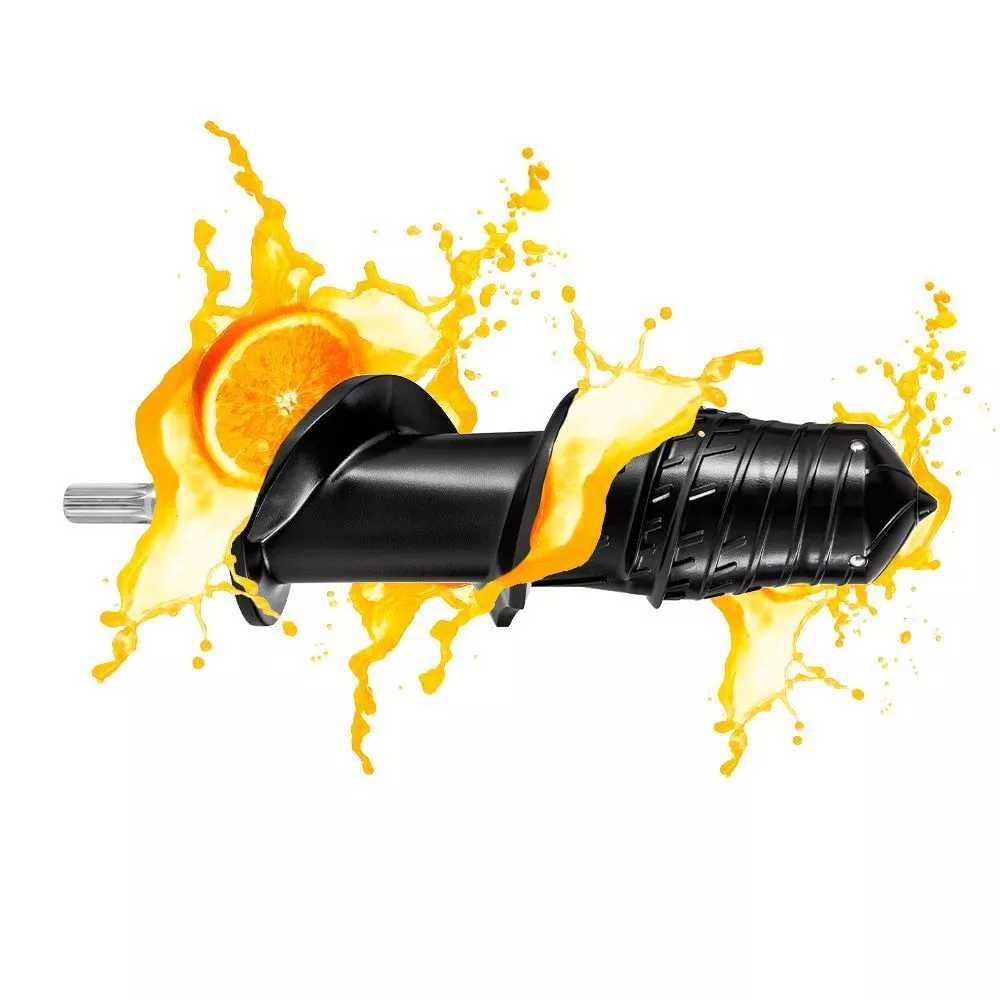 - Эффективный отжим с сухим жмыхом благодаря шнековой системе и двум скоростям: