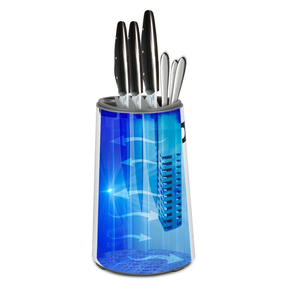 - + Вещь отличная,казалось бы не такая и нужная,но всё-таки подставка для ножей,а тут ещё кнопочку нажмёшь и ножи стерильны. Все работает,через 40 минут отключается сама,так что следить не надо.