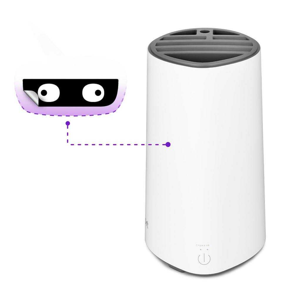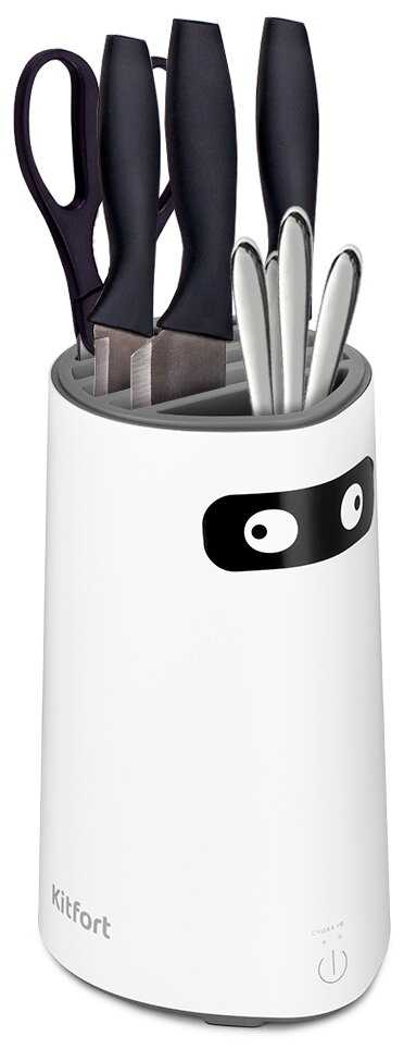 - + стильный дизайн белый с серым цветом, подходит для любого интерьера, глазки наверно уберу. подходит для всех ножей и ножниц.