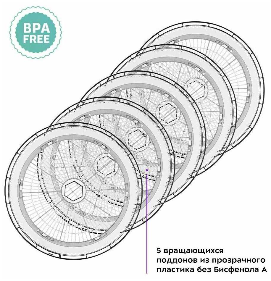 - Вместимость до 5 кг на 5 поддонах позволяет сушить большие объемы одновременно: