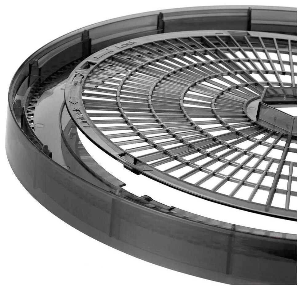 - Съемное дно поддонов увеличивает высоту для объемных фруктов вроде хурмы или мандаринов, сохраняя равномерность циркуляции воздуха и минимизируя риск перегрева.
