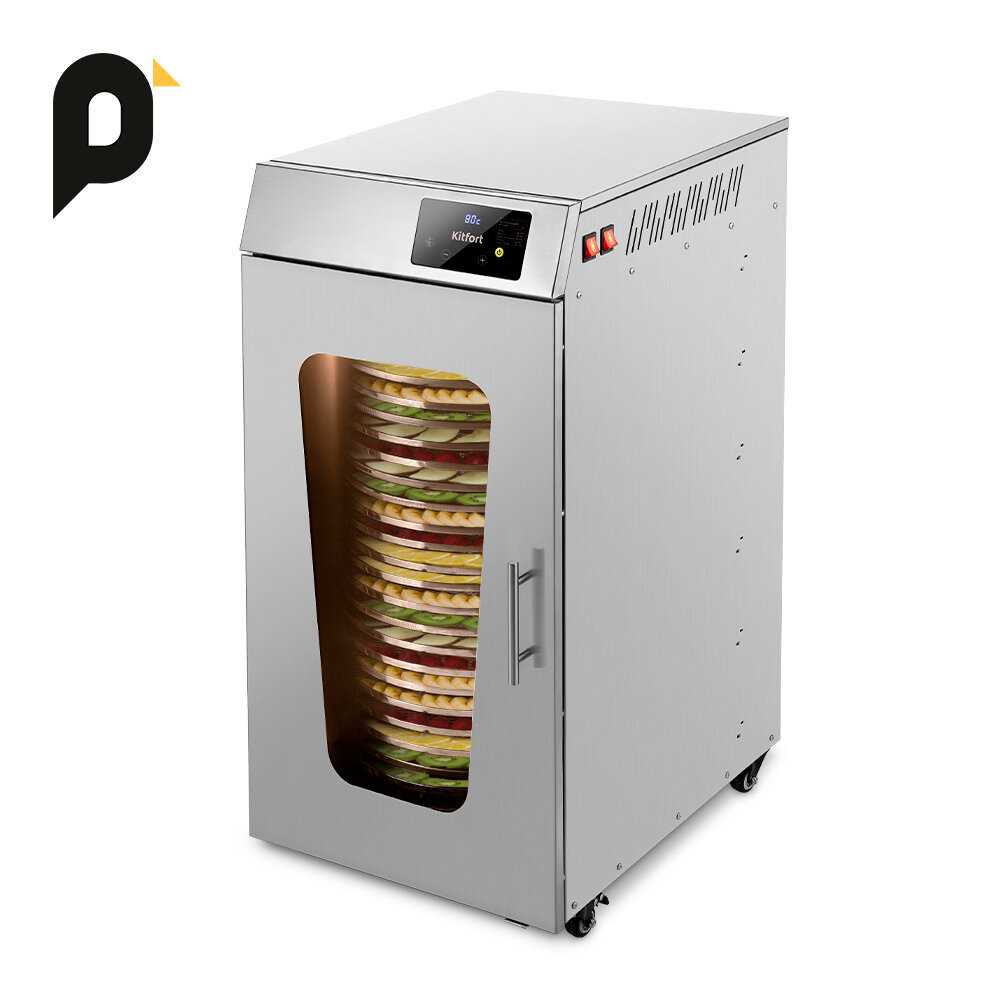 Давно хотели приобрести для небольшого бизнеса. Сушилка очень вместительная и простая в управлении. 26 поддонов для различных видов продуктов. Удобно перемещать, так как предусмотрены специальные колесики. Режим вращения поддонов также приятно удивляет.