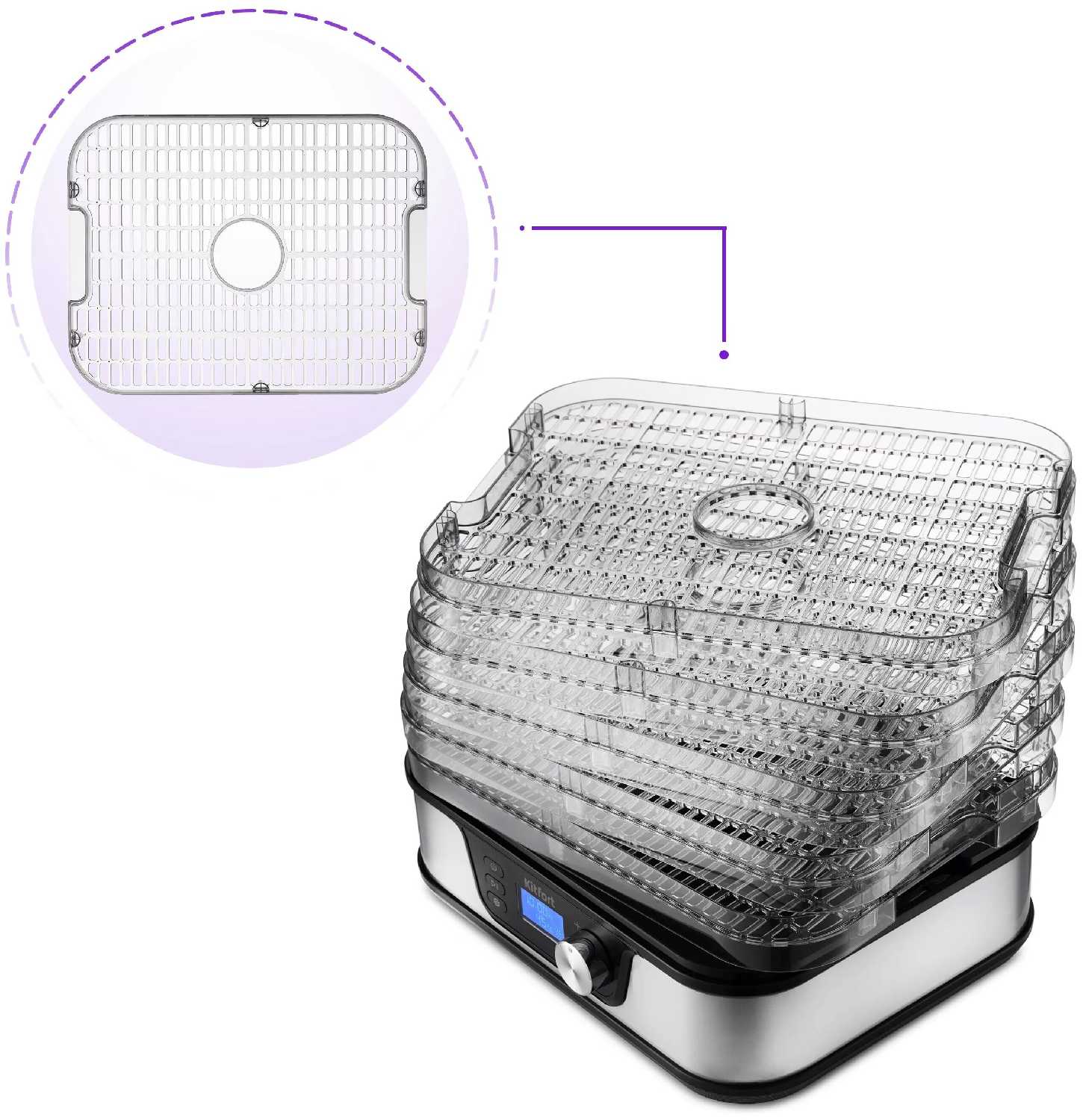 Кроме того, Kitfort KT-1918 легко очищается: съемные поддоны можно мыть в посудомоечной машине, что значительно экономит время. Эта модель также энергосберегающая, что важно для тех, кто заботится о расходах на электроэнергию.