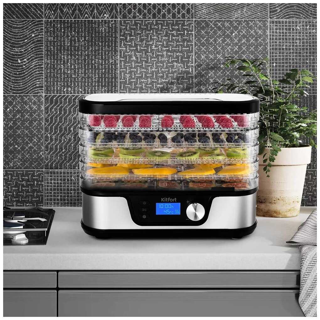 Сушилка для овощей Kitfort KT-1918 стала настоящей находкой для нашей кухни! Она обладает стильным и компактным дизайном, что позволяет легко вписать её в любой интерьер. Удобная панель управления с интуитивно понятными кнопками позволяет настраивать температуру и время сушки, что делает процесс простым и комфортным.