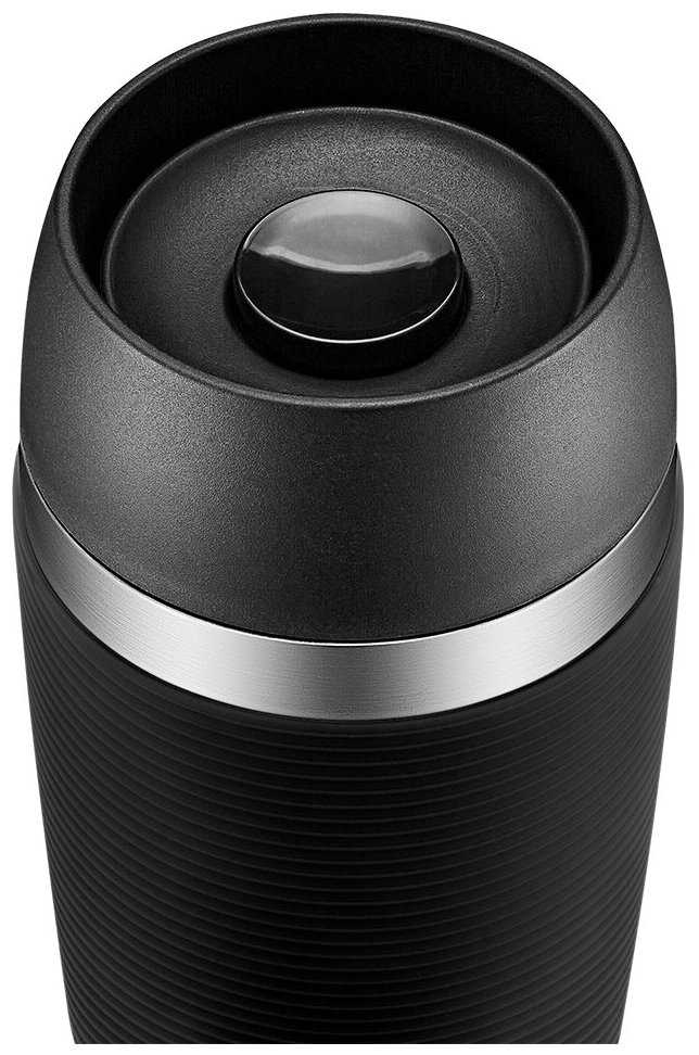 Конструкция крышки с кнопочным механизмом позволяет пить с любой стороны, что пользователи оценивают как значительное преимущество. Жидкость вытекает равномерно и плавно, без риска облиться кипятком. Широкое горлышко обеспечивает комфортное питье, как из обычного стакана, хотя при употреблении очень горячих напитков требуется некоторая осторожность. -