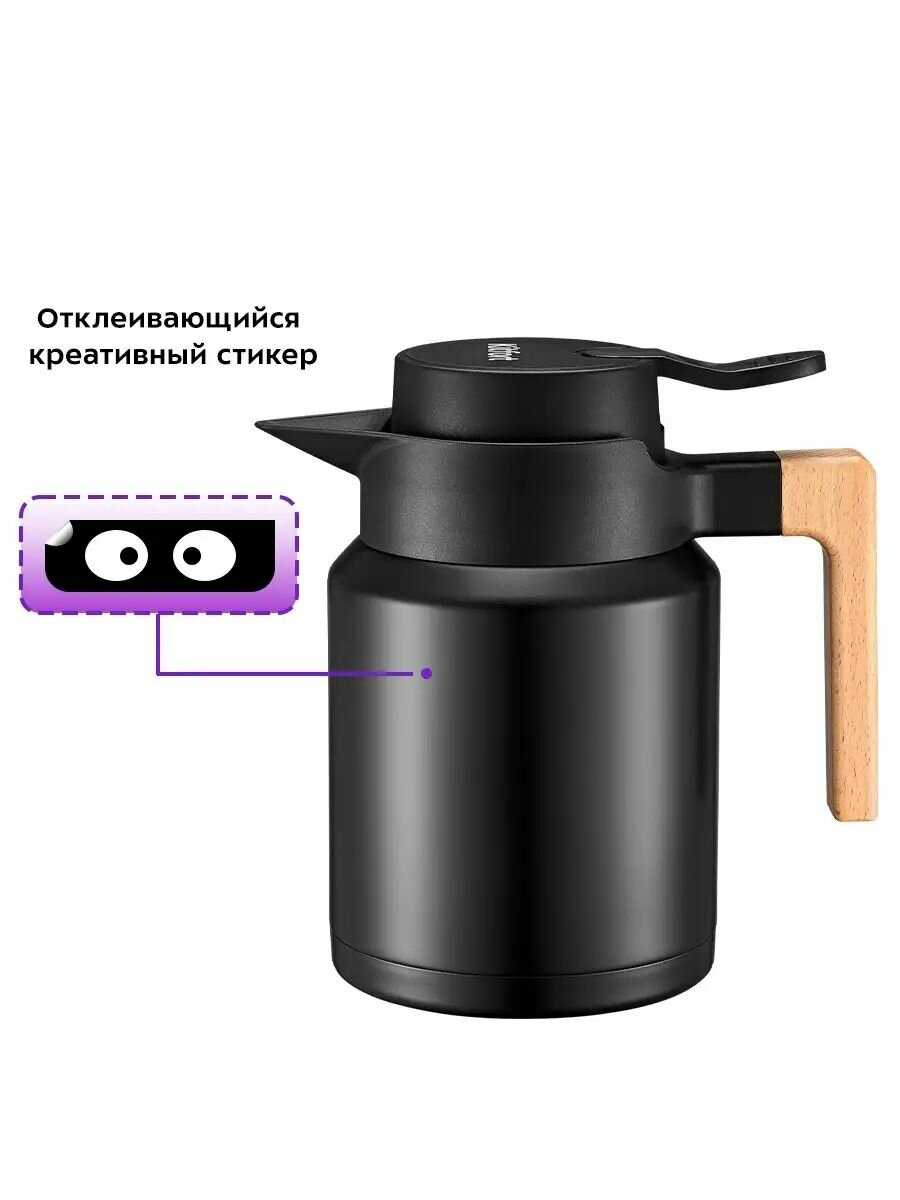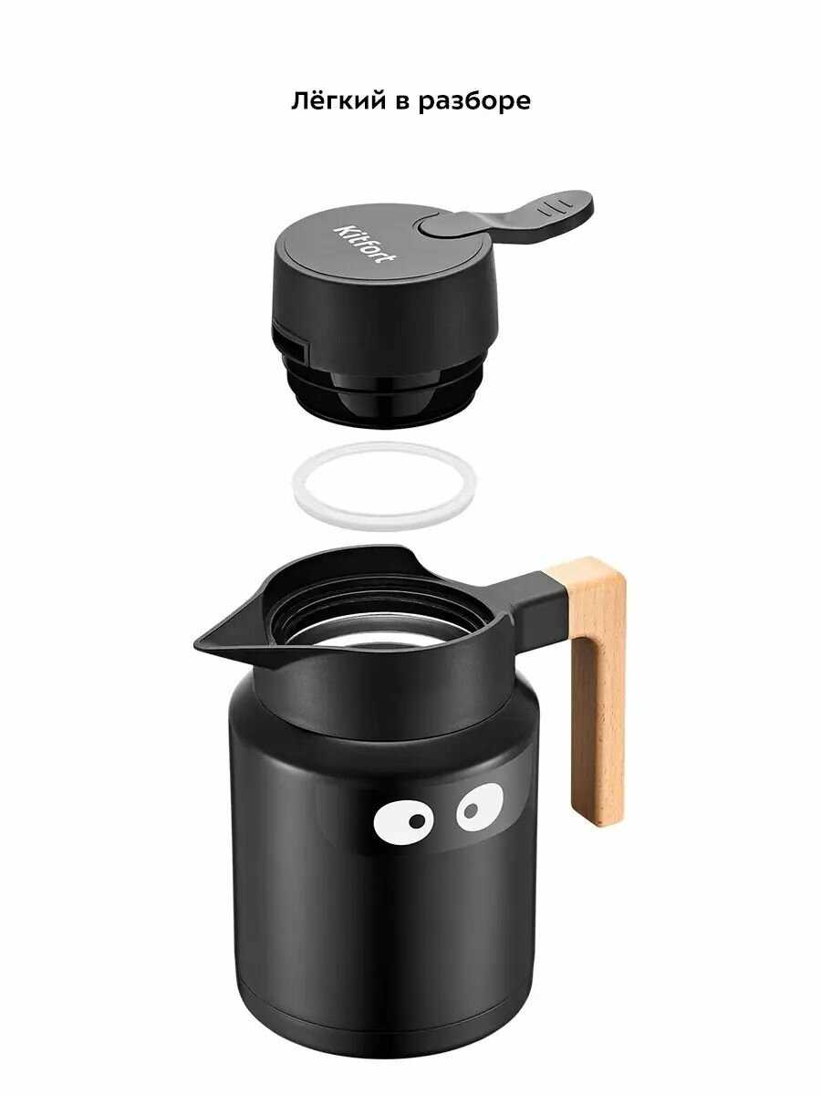 - + Классный дизайн, носик правильной формы, деревянная ручка, тепло держит 2-3 часа температурой которой можно заваривать чай.
