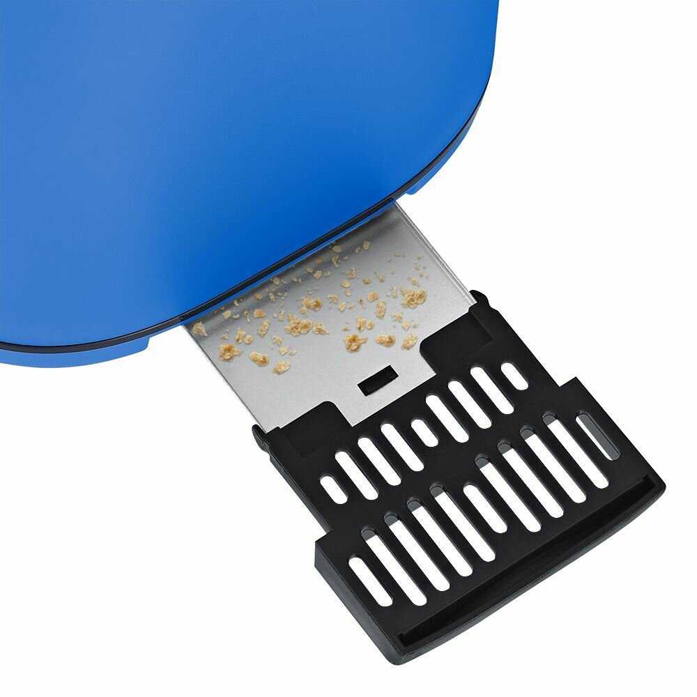 Хлеб равномерно прожаривается, хорошо выскакивает, не застревает. Удобный поддон, собирающий крошки, его легко извлекать для очистки.