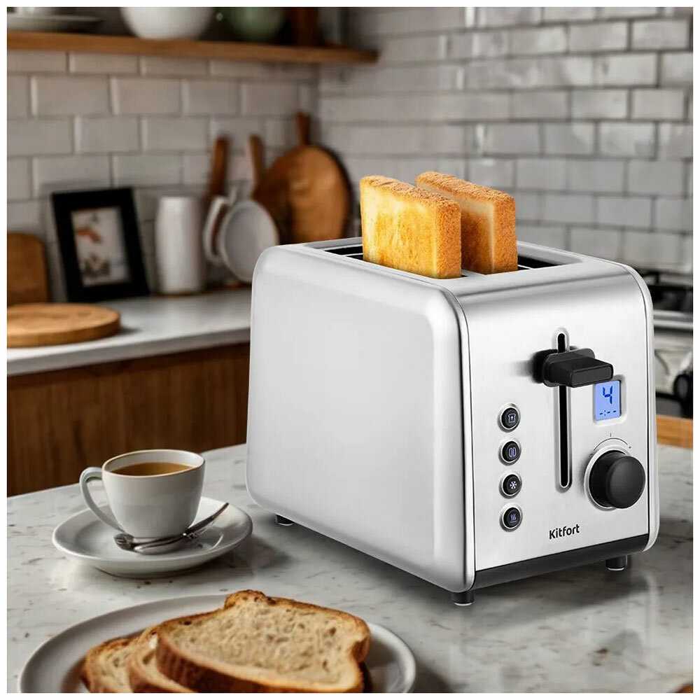 Купили тостер именно марки Kitfort, потому что эта марка в нашем доме не в новинку. У нас уже есть приборы Kitfort, которыми мы активно, много лет пользуемся. Тостер куплен для здорового питания, так как при гастрите порекомендовали подсушенный хлеб. Увидели на яндекс маркете тостер и он нас очаровал своим дизайном. Теперь эта красота у нас на кухне и радует нас вкусными тостами на завтрак. Очень удобен в использовании. Достаточное количество режимов хлеба. Все кнопочки очень полезны и удобны. Рекомендуем покупку.