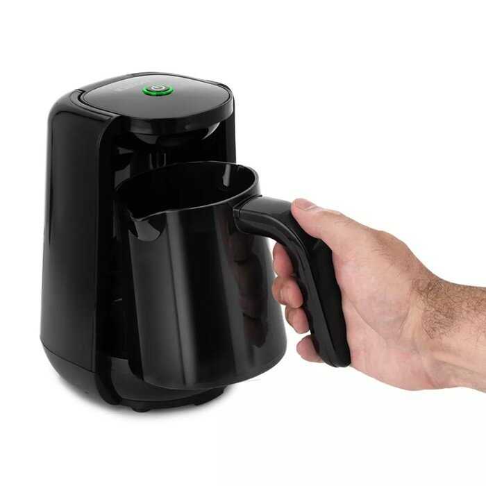 Приобретали электрическую турку в черном цвете, и она полностью оправдала ожидания: стильный минималистичный дизайн без лишних надписей и кнопок, удобная в использовании ручка и в целом механизм приготовления кофе.