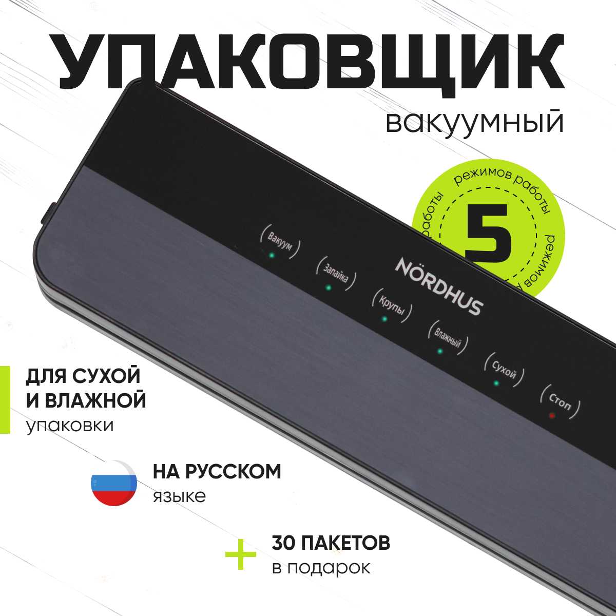 - Устройство эффективно откачивает воздух даже из пакетов с влажными продуктами, предотвращая вздутие и сохраняя свежесть.