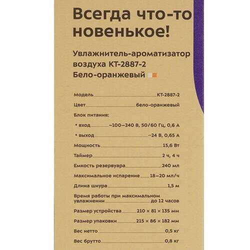Характеристи Kitfort Увлажнитель-ароматизатор воздуха (КТ-2887-2)