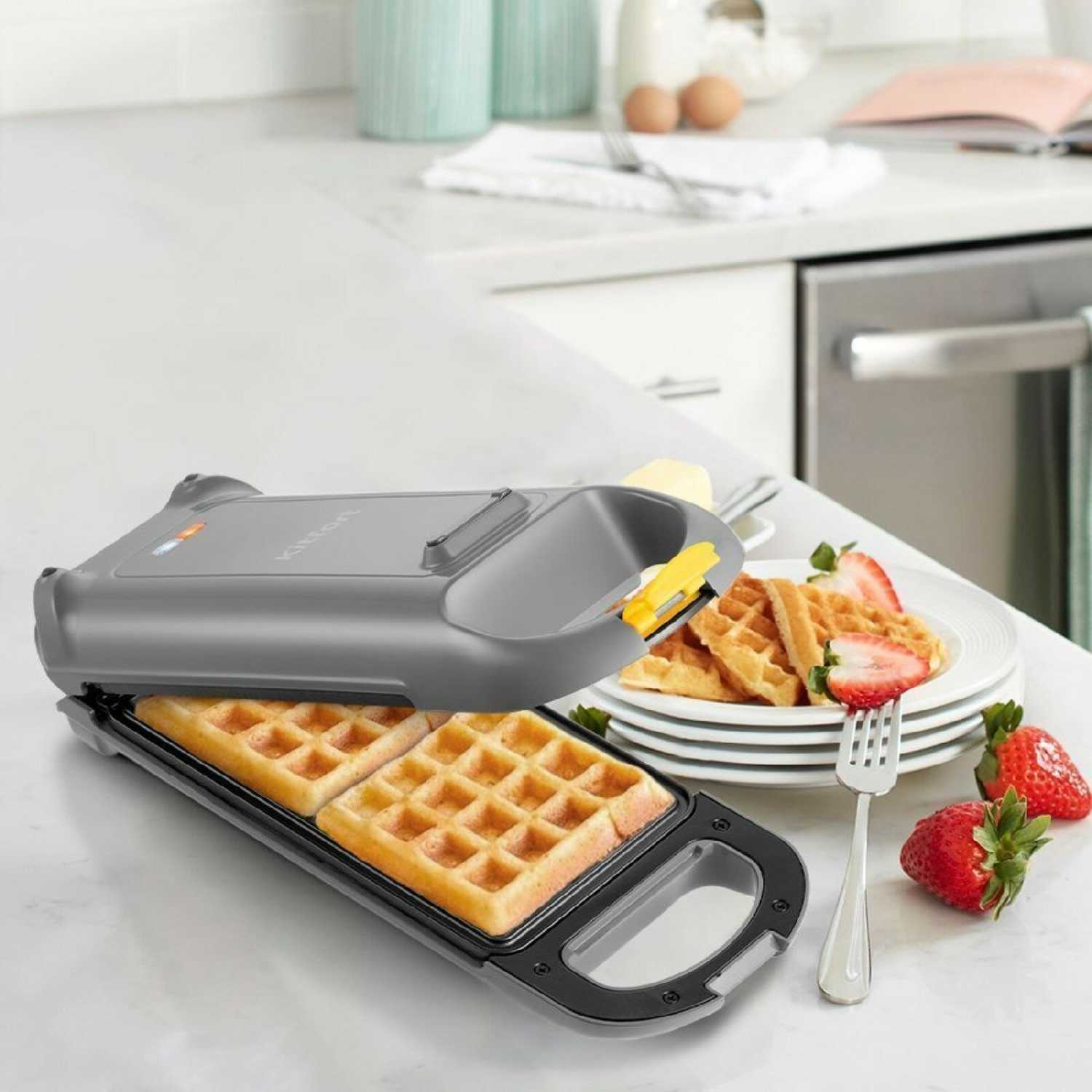 Устройство не занимает много места на кухне. Глубокие ячейки создают тот самый аутентичный вид и текстуру, как в бельгийских кафе.